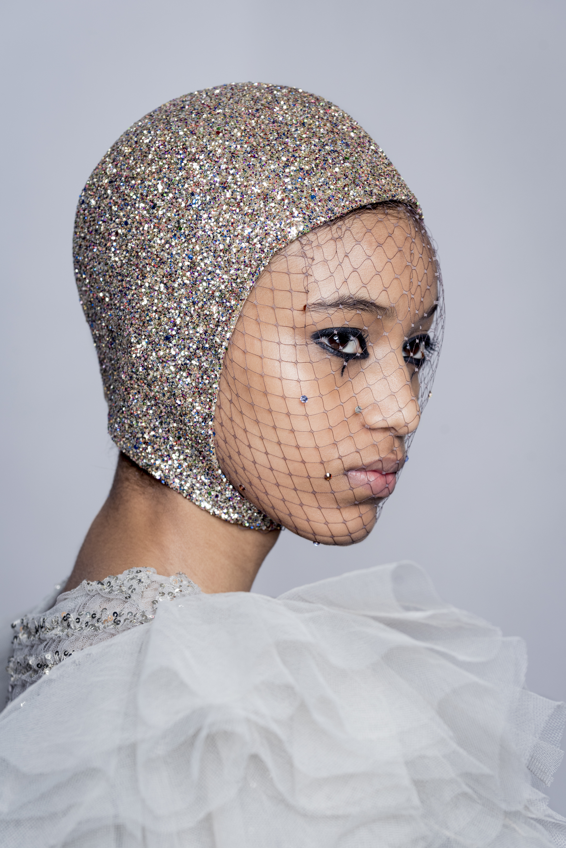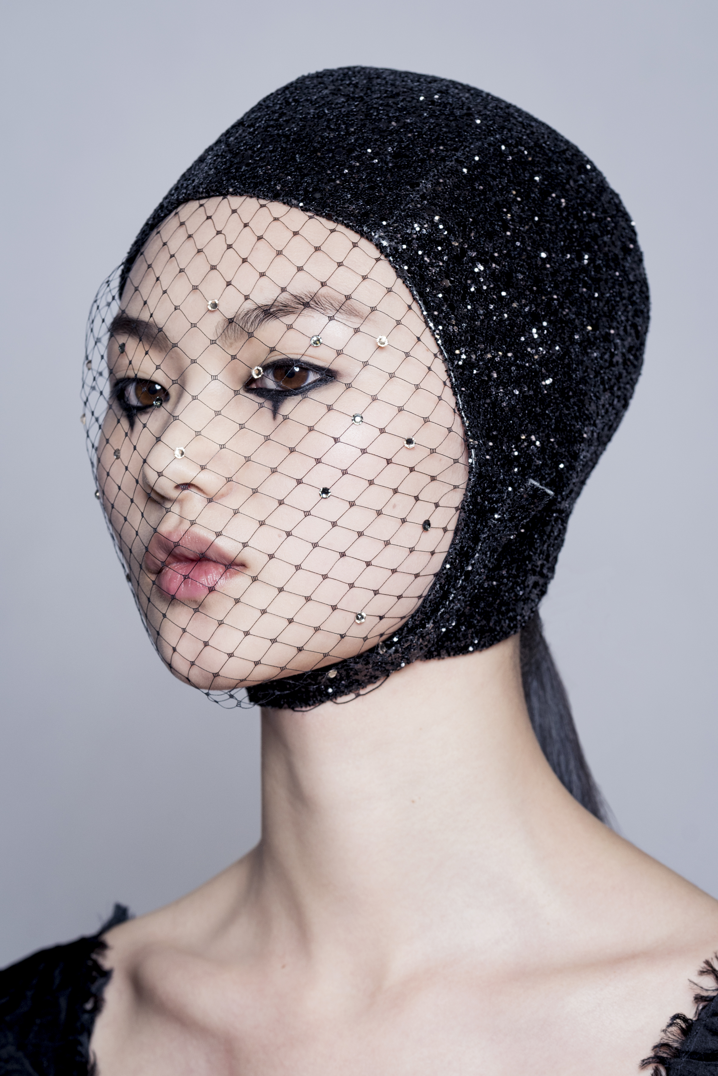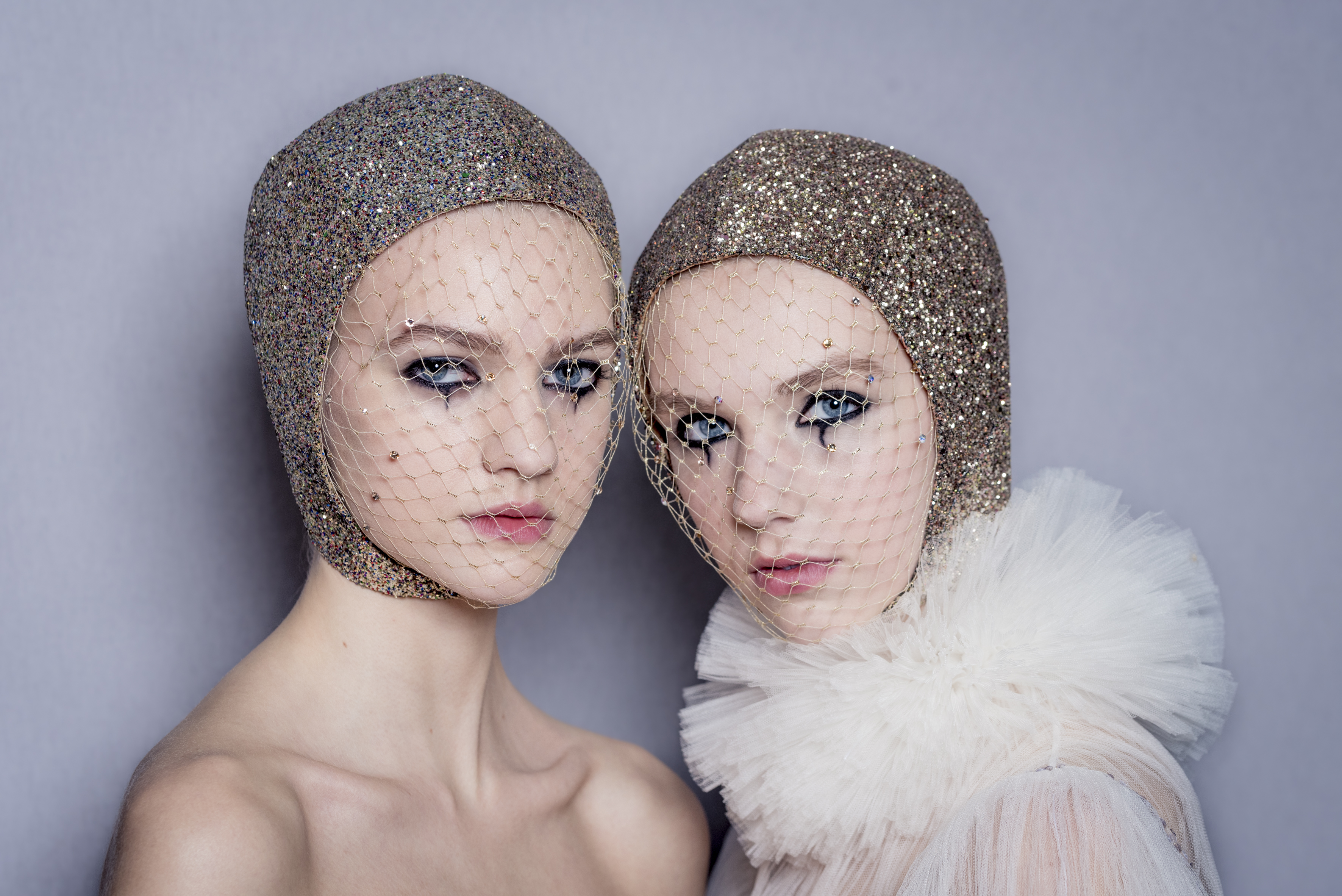 For Dior‘s latest Haute Couture collection, Peter Philips, Creative and Image Director for Dior Make-up, devised a dramatic make-up look that focused primarily on the eyes. “I chose a dark and graphic messy look, with a pattern that blends a punk aesthetic with a dreamy pierrot feel. All the emphasis was on the eyes, which are intriguing, and draw you in.” explains Philips. The complexion, lips, and nails were kept natural to further enhance the darkness of the eyes. The hair was also minimal, with each model sporting hoods that had neutral-coloured net veils with crystals attached to them.