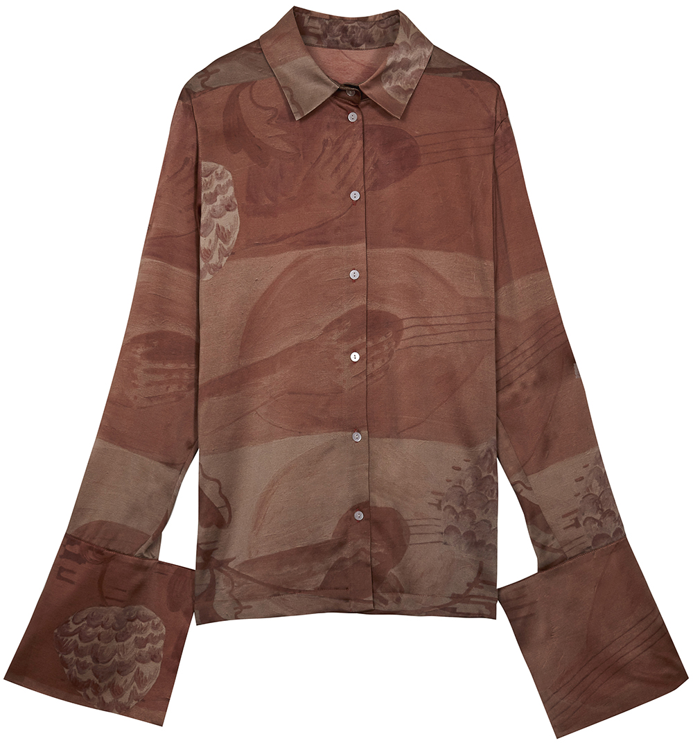 Strumming on Cadmium Organic ‘Peace’ Silk Top, $2030, BITE, bite studios.com.