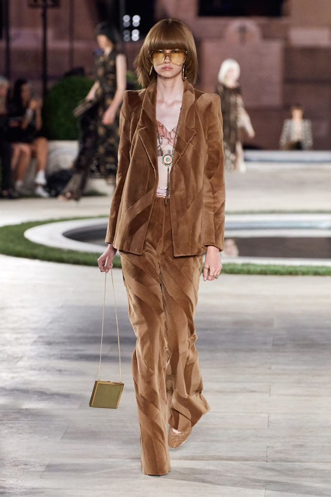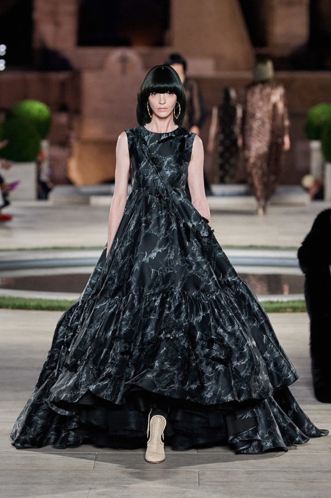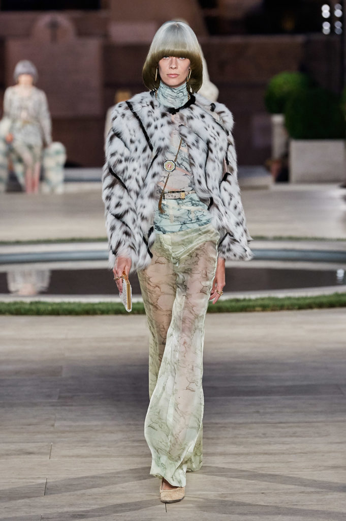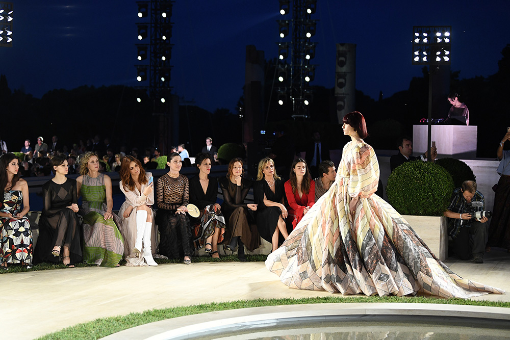 Fendi showcased its Fall 2019 Haute Couture collection on July 4th against the monumental backdrop of Colle Palatino, in the heart of Ancient Rome. The 54-look show (one for every year of Karl Lagerfeld’s tenure) titled “The Dawn of Romanity” delivered an assortment of ancient marble and mosaic prints, maxi coats, light fur stalls, and billowing sheer ballgowns. The tone of the show was set with nostalgic ’70s inspired bowl wigs and XL retro shades. Models glided down the paths in the Temple of Venus to an eerie live performance by Italian composer Caterina Barbieri, which fit the show perfectly. Following the presentation, celebrities and fashion’s front row enjoyed a dinner on the ancient grounds with Creative Director Silvia Venturini Fendi. The event came to a close with a performance by New York R&B duo, Lion Babe.