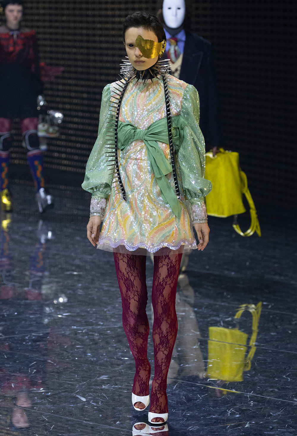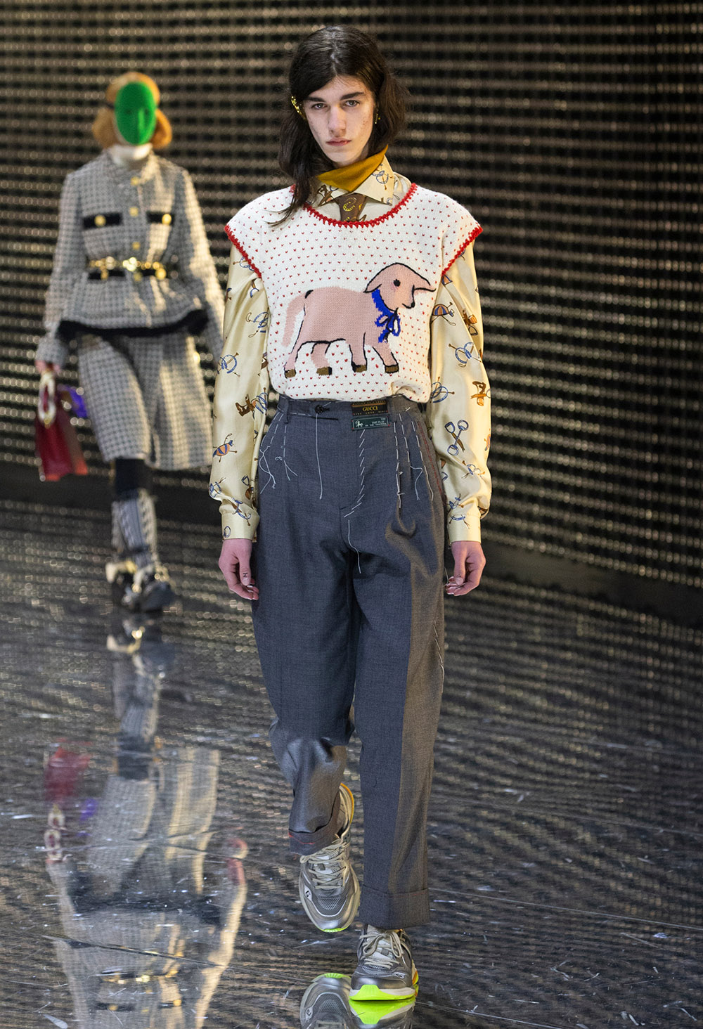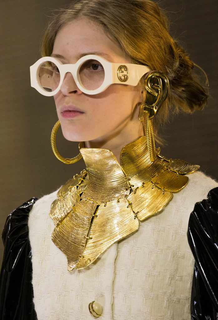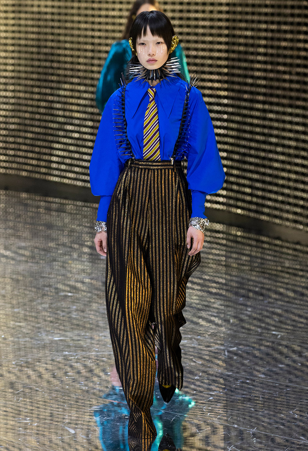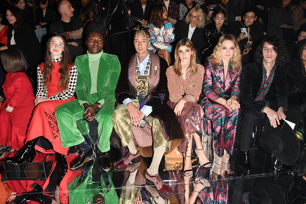 Since taking the reigns at Gucci, Alessandro Michele has proved time and time again that his attention to detail comes with a “more is more” attitude that showcases the beauty in layering and adding bold accessories. The Fall/Winter 2019 runway show took place in Milan on February 20th where stars such as Salma Hayek and Saoirse Ronan got a front row look at a new season of costume jewellery, boxy suiting, floral brocades, and shocking elements such as massive spikes and face masks bringing in a sense of illusion and fantasy.