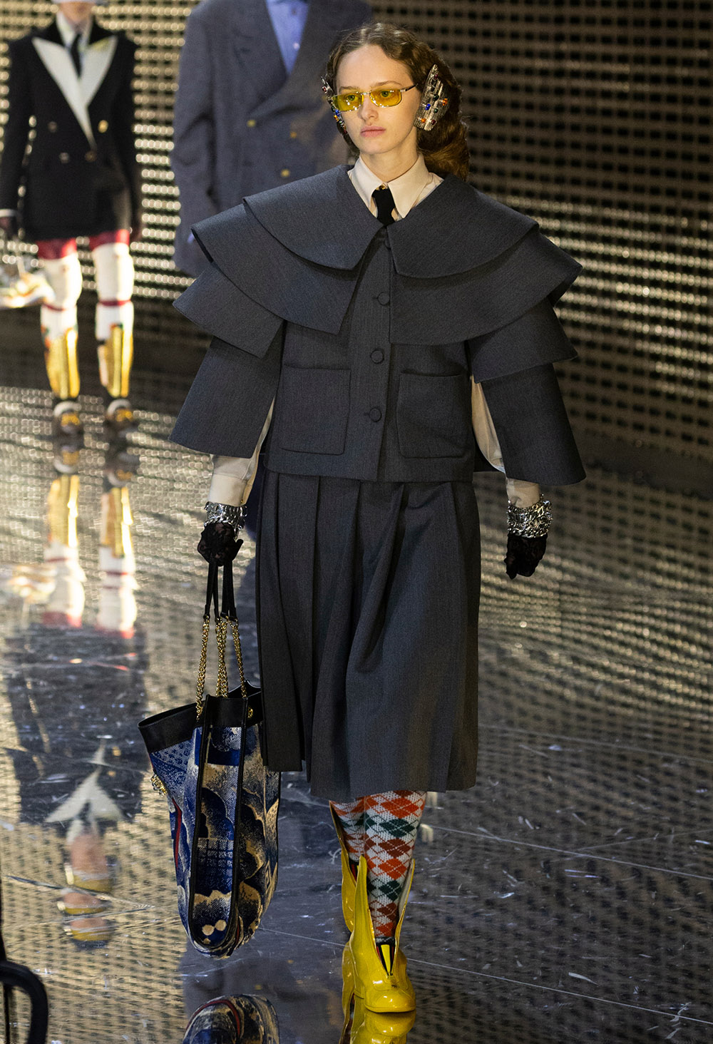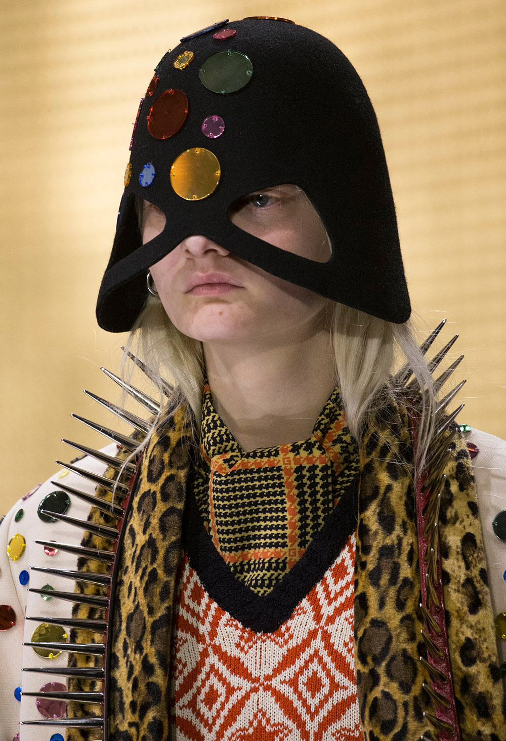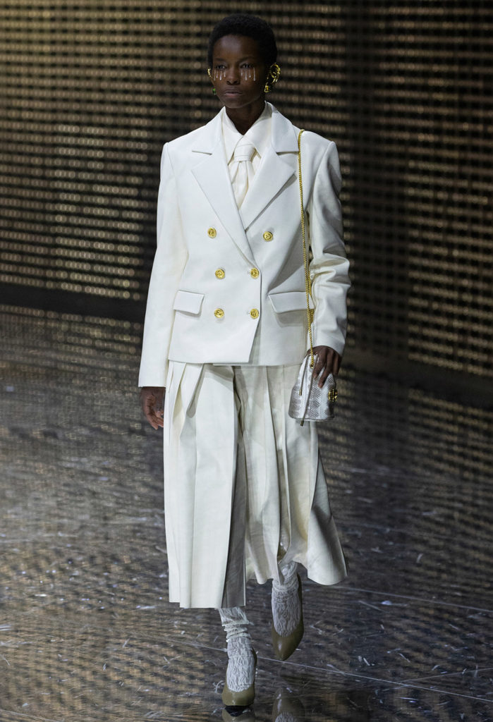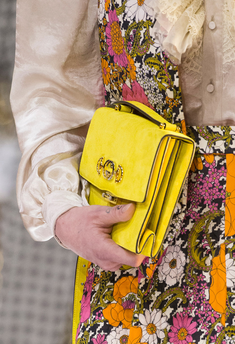 Since taking the reigns at Gucci, Alessandro Michele has proved time and time again that his attention to detail comes with a “more is more” attitude that showcases the beauty in layering and adding bold accessories. The Fall/Winter 2019 runway show took place in Milan on February 20th where stars such as Salma Hayek and Saoirse Ronan got a front row look at a new season of costume jewellery, boxy suiting, floral brocades, and shocking elements such as massive spikes and face masks bringing in a sense of illusion and fantasy.