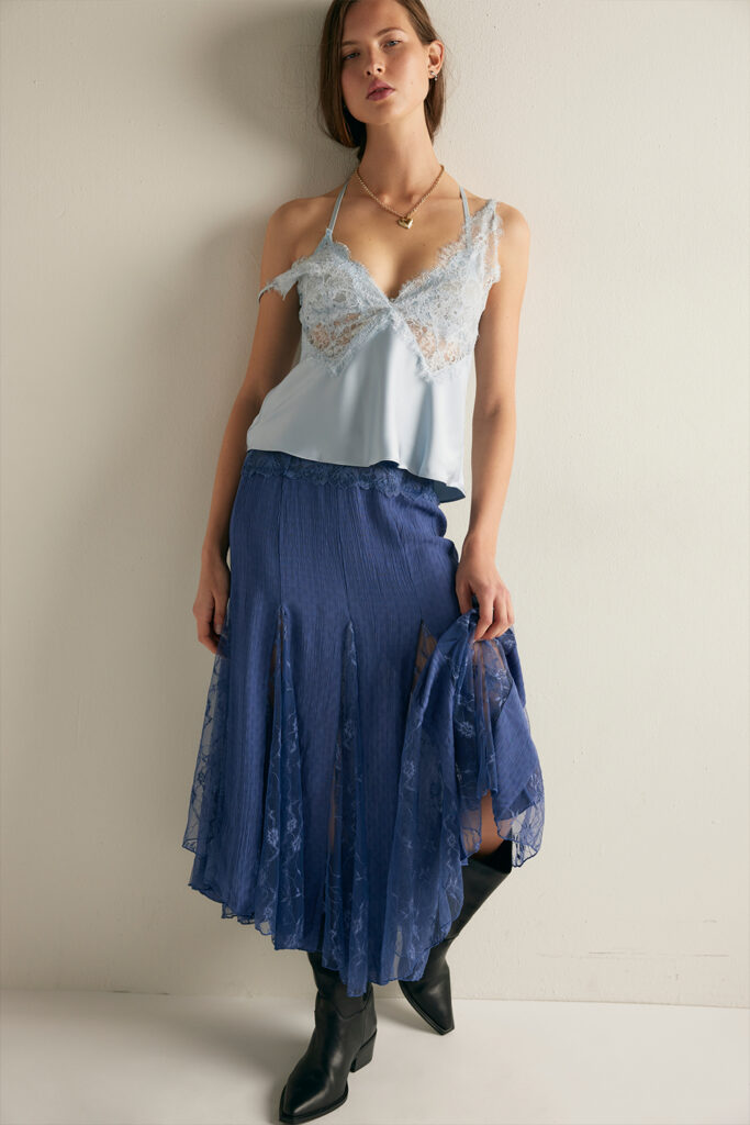 An ode to instinctive layering, this delicate Free People half slip is fun, flirty, and oh so divine. Cut in a fluid A-line silhouette, it skims the body before lifting at the sides. Not only does it add an edge of flair, but it’s also daring, revealing flashes of lace and skin with subtle confidence. Style it with a belt, beneath an oversized duster, or wear it with knee-high boots—it’s a skirt that’s as versatile through the seasons as it is from day to night. Embodying a certain kind of playful femininity, it reimagines proportions, whispering notes of whimsy into your everyday wardrobe. You’ll find yourself wanting to layer it into every look.