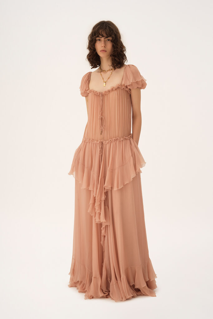 Gathered Long Ruffled Dress in Silk Mousseline, Chloé, $9,520.