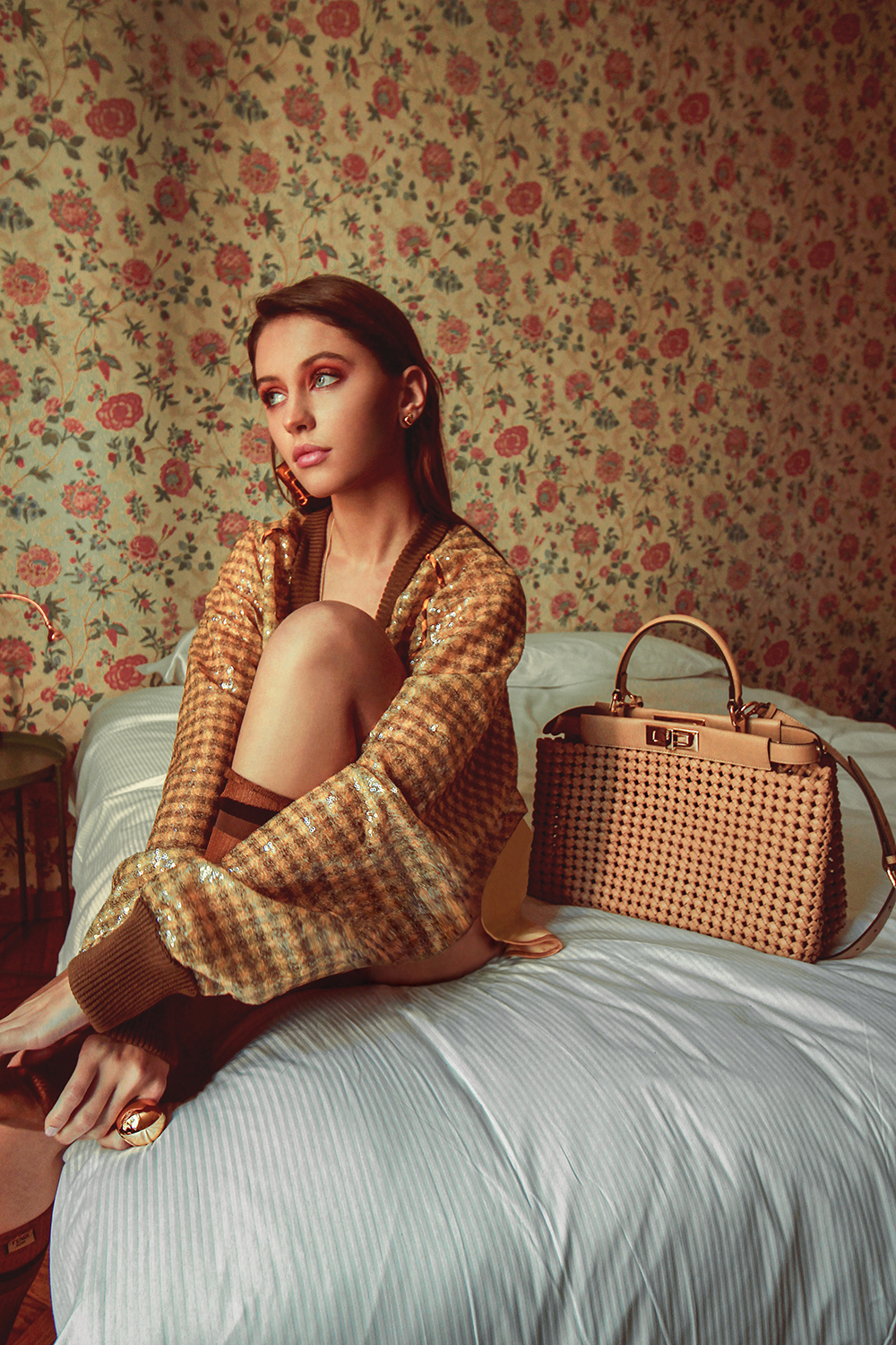 When asked to describe the Fendi Peekaboo bag in three words, Iris Law picked “wearable, chic, and timeless.” In the latest Fendi episode, the 19-year old model is seen showing off her playful side and speaking on the importance of fashion and creativity while modelling the Peekaboo bag. When asked what traits she shares with the bag, Law pointed out its versatility: “I think of the Peekaboo bag as someone who loves having a personal and versatile sense of style. It’s useful to have a bag which can be worn according to the various vibes of outfit I wear day to day. Some days I want to dress androgynous and the Peekaboo bag could easily go with a suit and boots, while with a dress, it also goes perfectly.” What’s one thing Law always makes sure to have in her bag? Her camera.