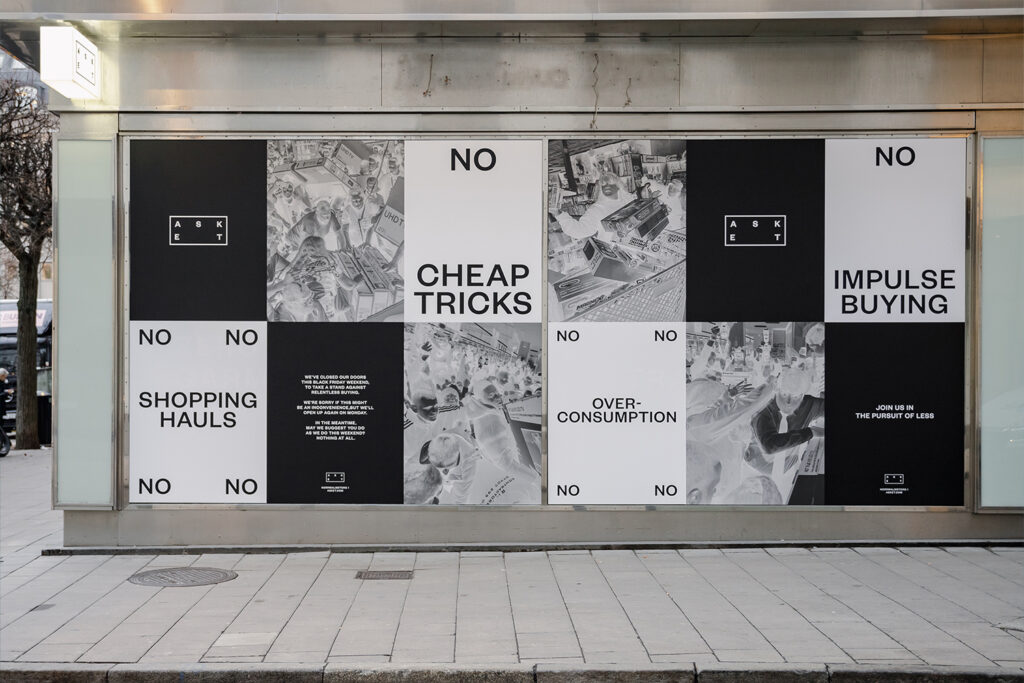 Founded a decade ago in Stockholm, Sweden, on the premise of celebrating clothes that are truly worn and loved, Asket focuses on timeless, essential garments designed to last rather than feed the constant churn of trend cycles. Aligned with this philosophy, the brand has never offered discounts or sales, so when Black Friday first arrived in 2015, they simply decided not to participate. The following year, they took an even more powerful stance and closed their stores for the day. To redirect consumers’ focus from buying new things to caring for what they already own, they also launched a garment-care program. To this day, Asket has continued this tradition—shutting down both its e-commerce and physical stores each Black Friday as a powerful counter statement.