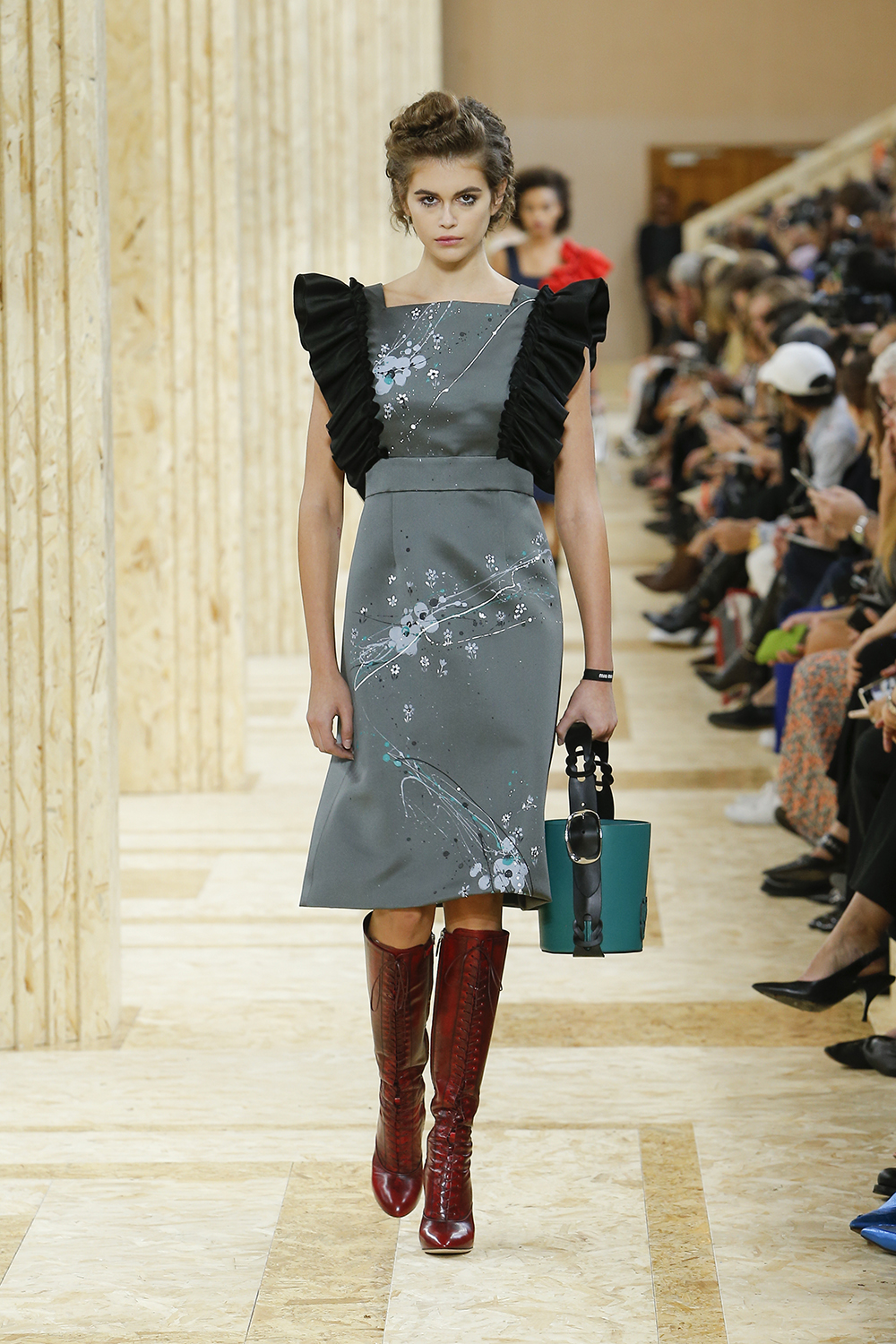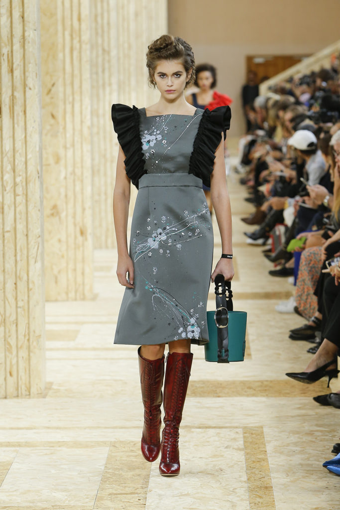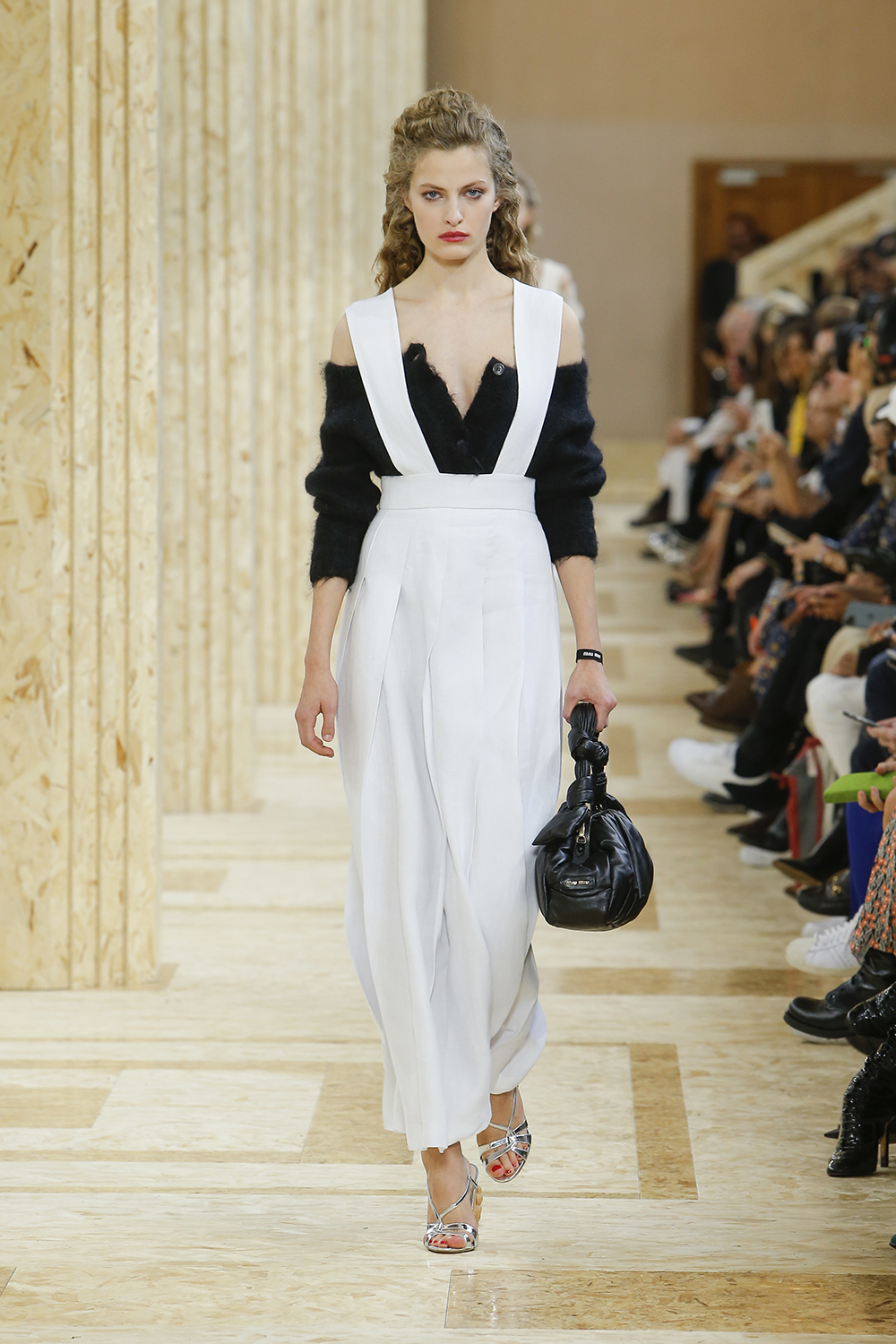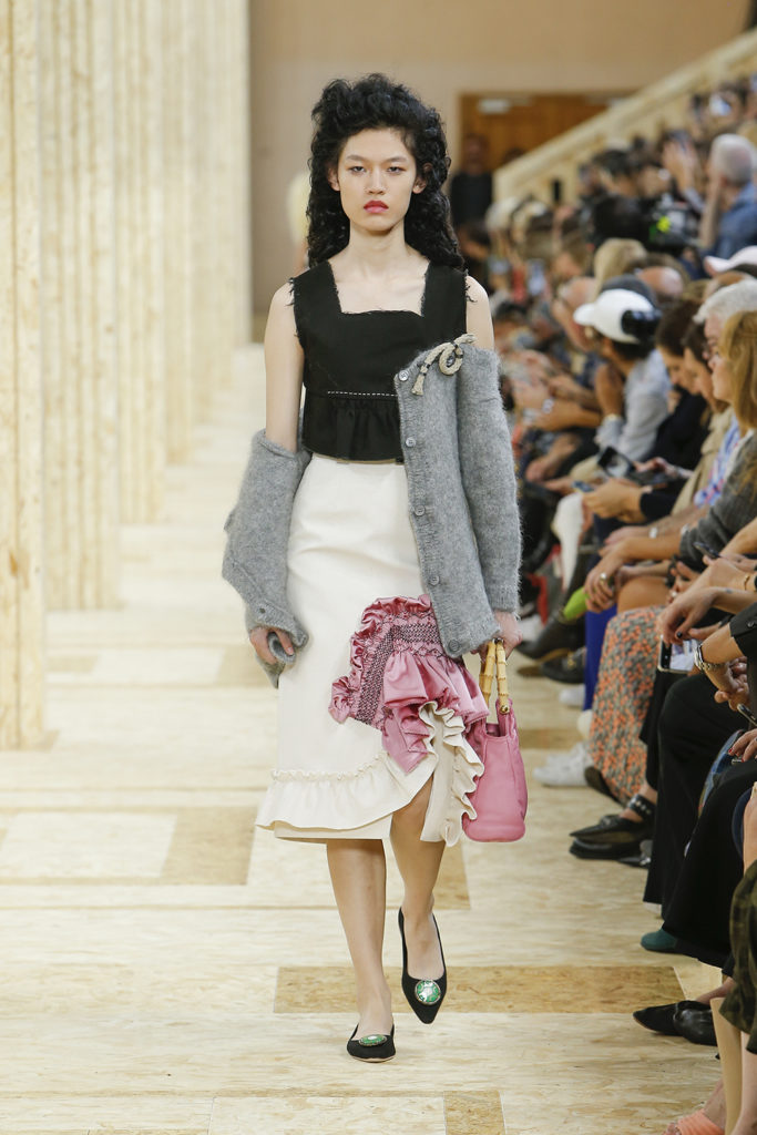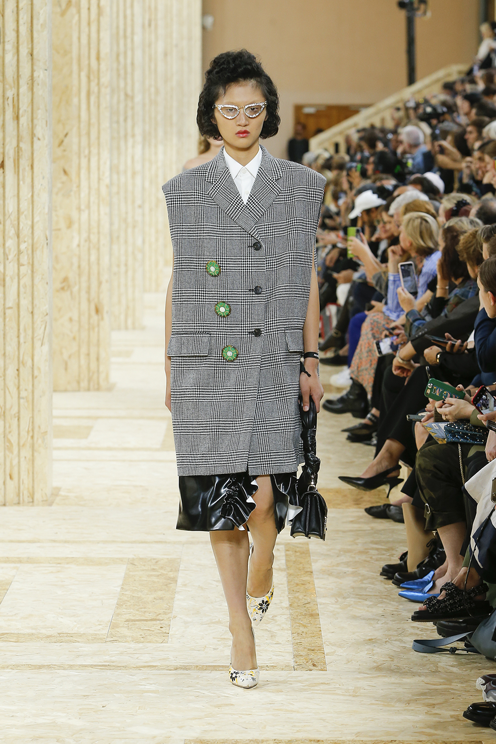 Miu Miu‘s Spring/Summer 2020 collection was shown on October 1st at Palais d’léna in Paris. The contrast in the collection created “spontaneous imperfection”, tying together unlikely couplings that create a dialogue between the clothing and its wearer. The serious and playful elements come together with mismatched buttons, fun jewels, cat-eyed glasses, and accessories adorning the sophisticated silhouettes. Celebrities in attendance included Lili Reinhart, Rita Ora, Bel Powley, and Alexa Chung.