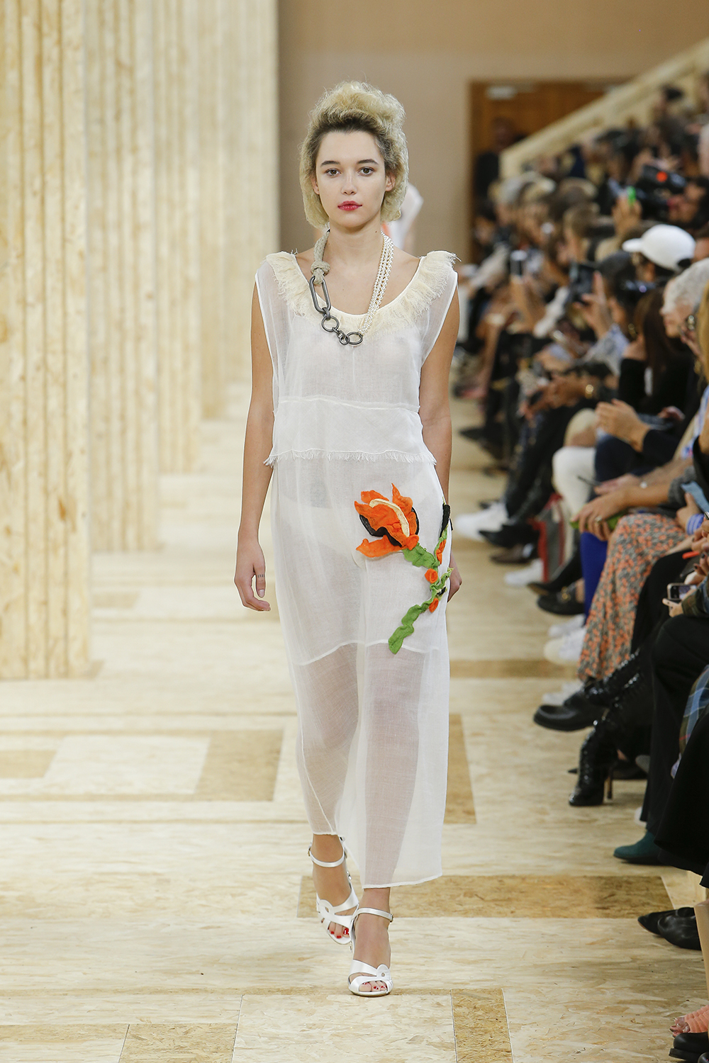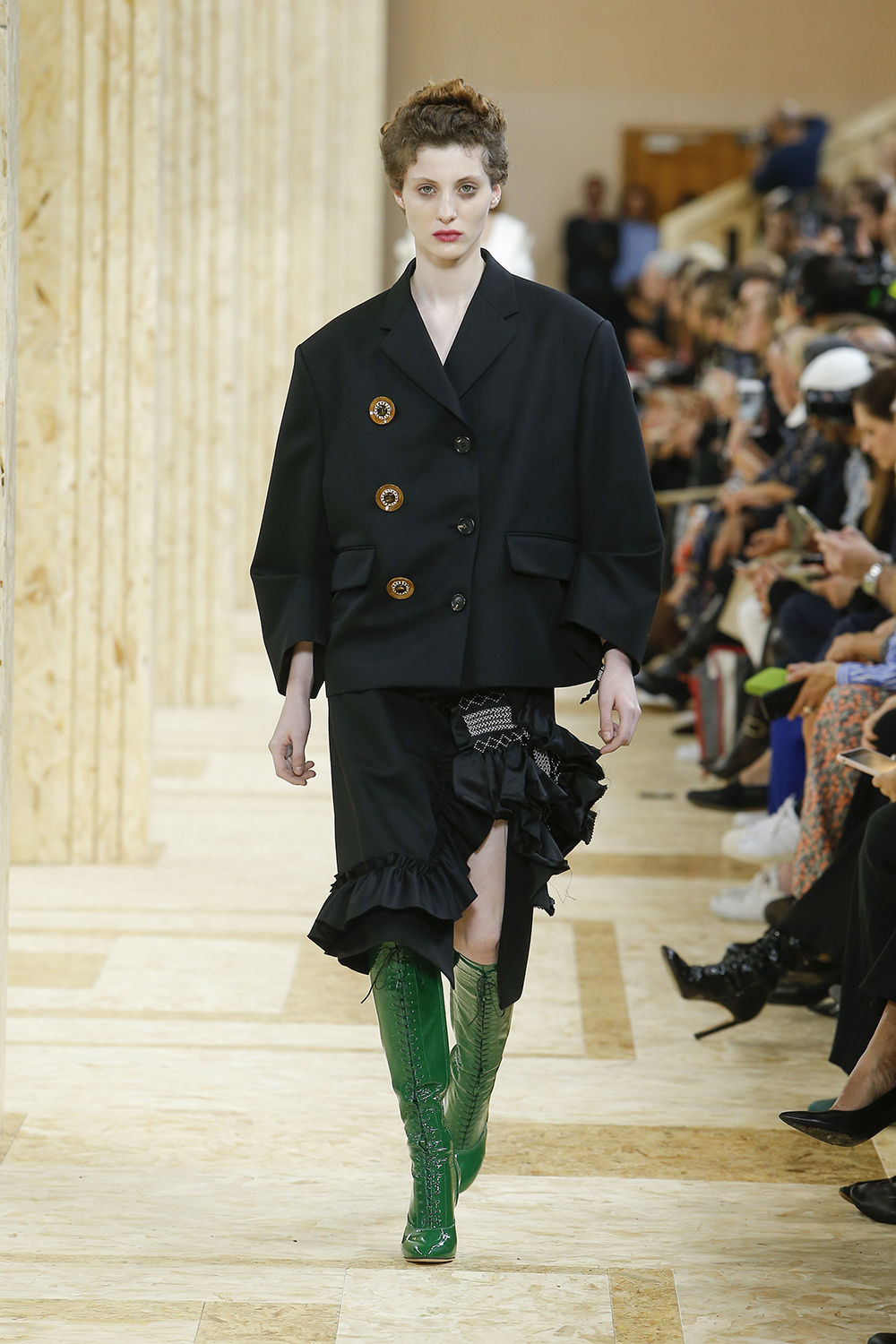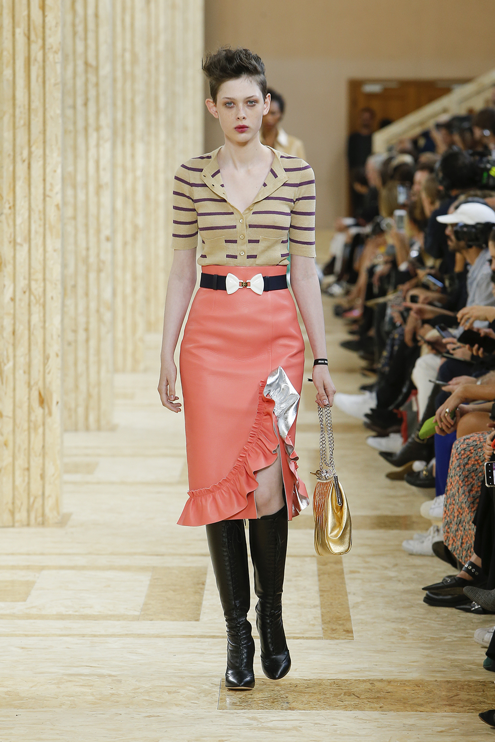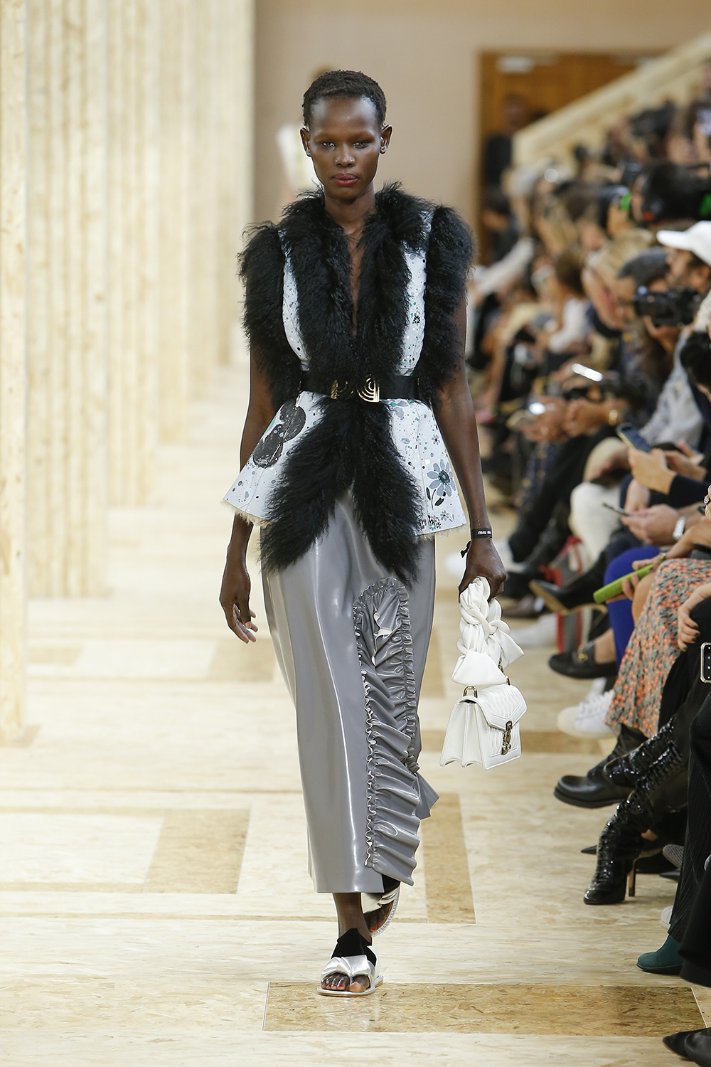 Miu Miu‘s Spring/Summer 2020 collection was shown on October 1st at Palais d’léna in Paris. The contrast in the collection created “spontaneous imperfection”, tying together unlikely couplings that create a dialogue between the clothing and its wearer. The serious and playful elements come together with mismatched buttons, fun jewels, cat-eyed glasses, and accessories adorning the sophisticated silhouettes. Celebrities in attendance included Lili Reinhart, Rita Ora, Bel Powley, and Alexa Chung.