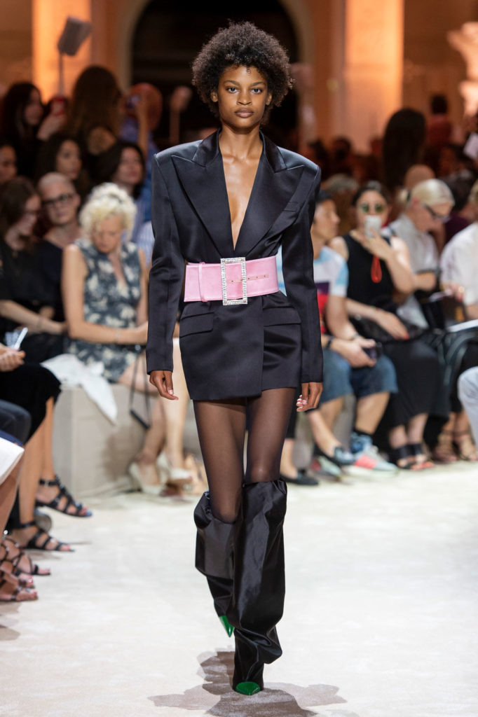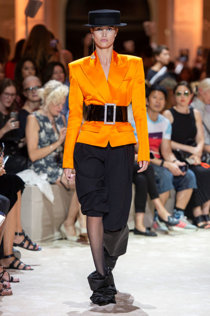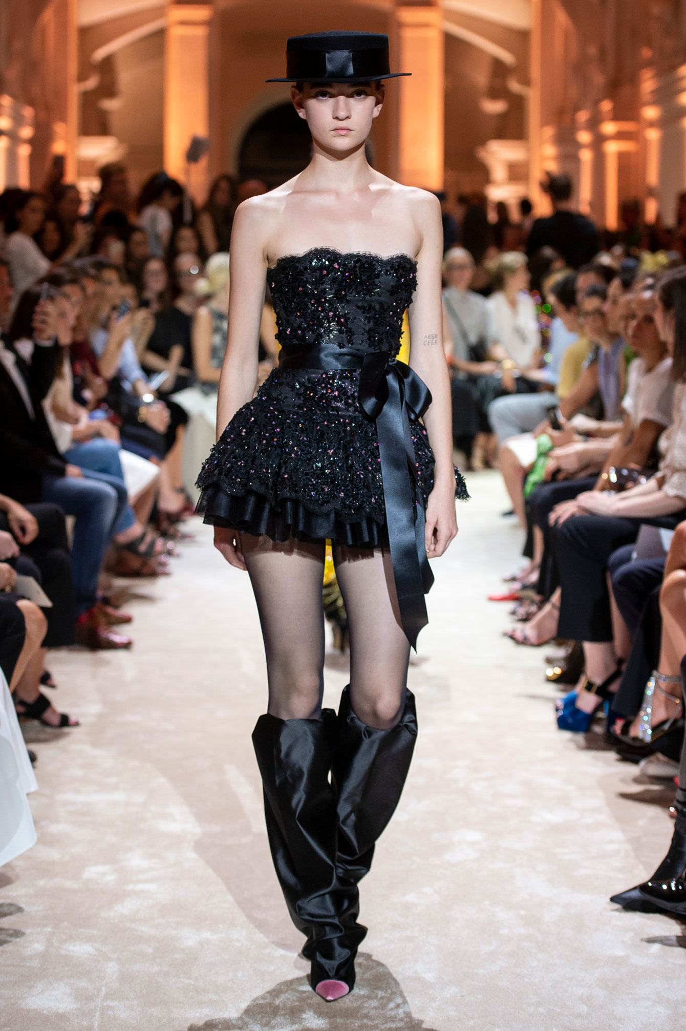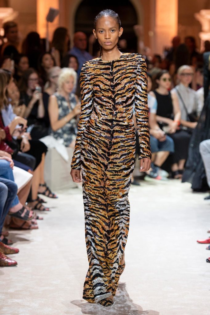 You can always count on Alexandre Vauthier to stir up couture week with a hefty dose of glamour. On July 3rd, Vauthier’s Fall/Winter collection explored all things Parisian with retro french elegance and familiar architectural ’80s silhouettes. Held in the enchanting Musee des Arts Decoratifs, models stomped the runway in a private club-like setting to the latest Kanye and Kid Cudi release. Front row attendees included Christian Louboutin, a friend and previous collaborator to the brand, Ellen Von Unwerth, Olivia Palermo and French art director Julia Restoin Roitfeld, to name a few. Delivering an assortment of bedazzled crystal studded gowns, surprising pops of colour, tiger motifs, and black and white combinations, the show had it all. To top it off, looks were styled with vamper boat hats, bolero ties, and signature slouchy thigh high boots. The show came to a close with a fabulous feather minidress finale.