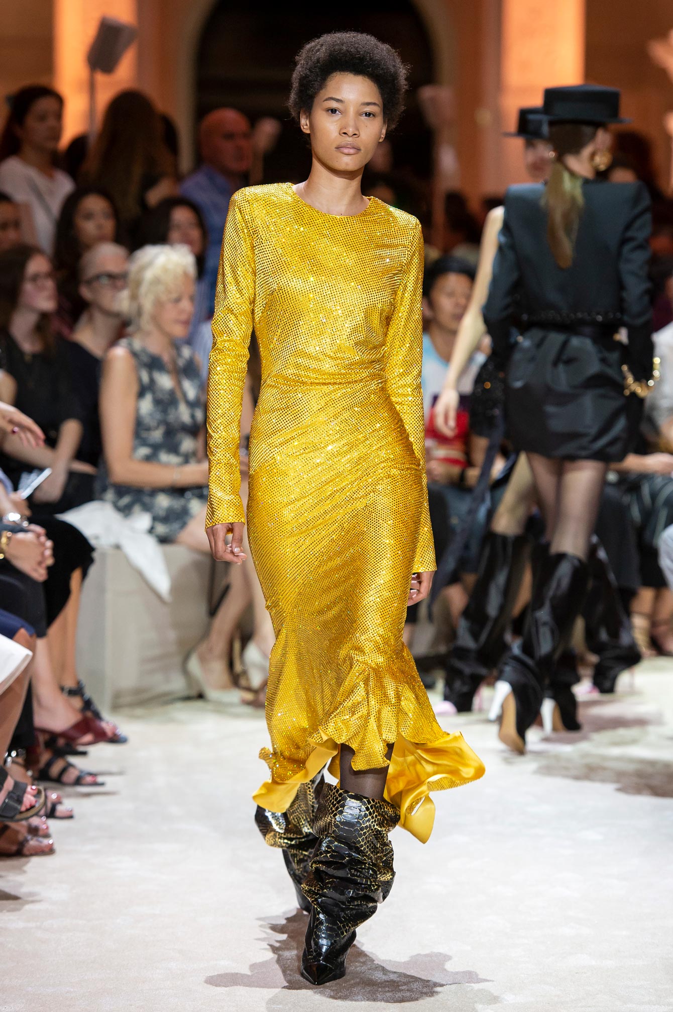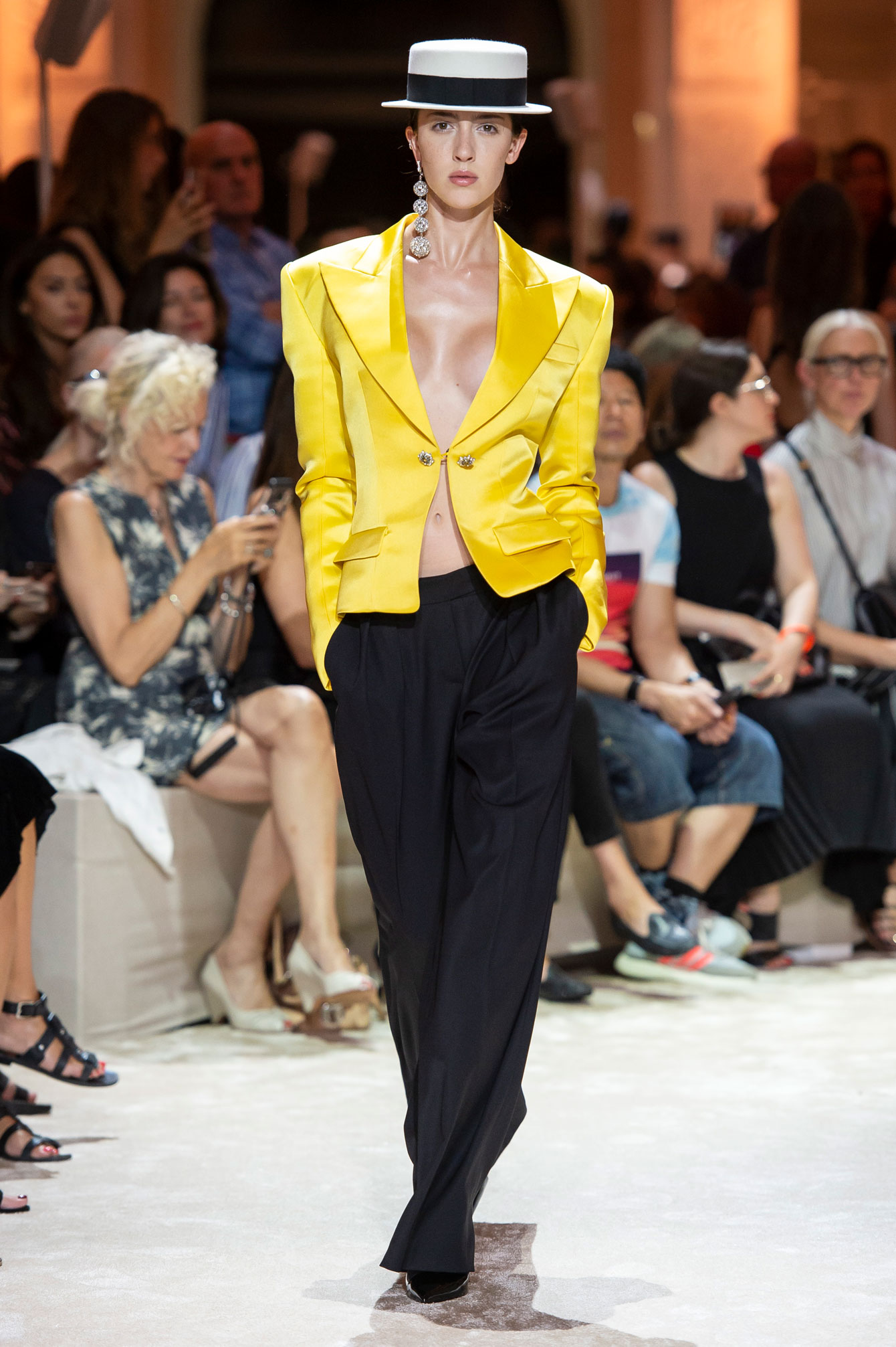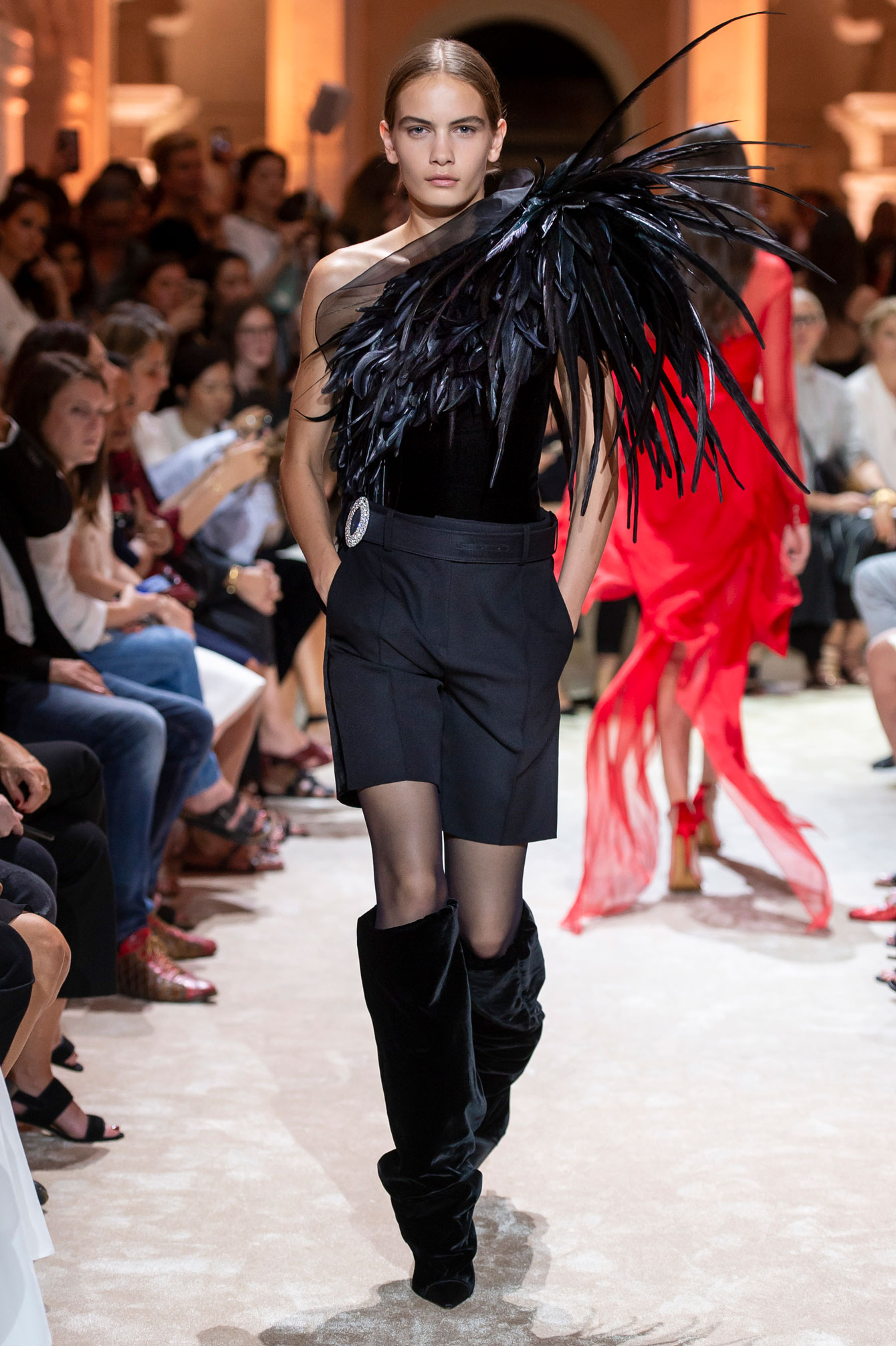 You can always count on Alexandre Vauthier to stir up couture week with a hefty dose of glamour. On July 3rd, Vauthier’s Fall/Winter collection explored all things Parisian with retro french elegance and familiar architectural ’80s silhouettes. Held in the enchanting Musee des Arts Decoratifs, models stomped the runway in a private club-like setting to the latest Kanye and Kid Cudi release. Front row attendees included Christian Louboutin, a friend and previous collaborator to the brand, Ellen Von Unwerth, Olivia Palermo and French art director Julia Restoin Roitfeld, to name a few. Delivering an assortment of bedazzled crystal studded gowns, surprising pops of colour, tiger motifs, and black and white combinations, the show had it all. To top it off, looks were styled with vamper boat hats, bolero ties, and signature slouchy thigh high boots. The show came to a close with a fabulous feather minidress finale.