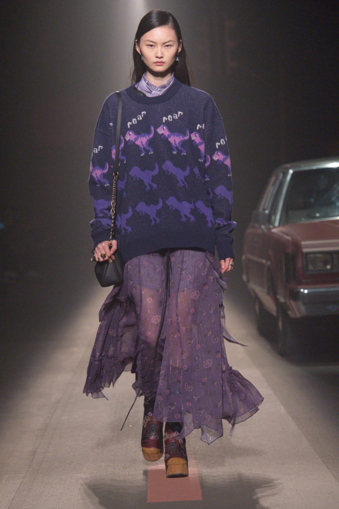 On December 8th, Coach took its Pre-Fall 2019 men’s and women’s collection to a whole new level—and continent—by lighting up Shanghai. The show took place at Shanghai’s iconic location, The Bund, at West Bund Art Center, with set design influenced by New York City. Bright lights, vintage cars (and at the after party, a sea of Rexy balloons) filled the space, amplifying Creative Director Stuart Vevers‘s vision of merging Shanghai and New York. Special pieces were made in collaboration with cultural icons such as Sui Jianguo, YETI OUT, Zhu Jingyi, and Guang Yu. Each artist reimagined Coach’s signature dinosaur, Rexy, in their own unique way. Key pieces included the chunky platform boots seen on both men and women, elongated tailoring, and reimagined patchwork detailing. The guests in attendance included current face of the brand Chloe Grace Moretz and brand ambassador Kiko Mizuhara. Following the show, guests immediately went into the after party enjoying mini hot dogs, delicious cocktails, and DJ sets from brand ambassador Timmy Xu, collaborator Thomas Bray of YETI OUT, and DJ Dazzy, who kept the crowd dancing long into the night.