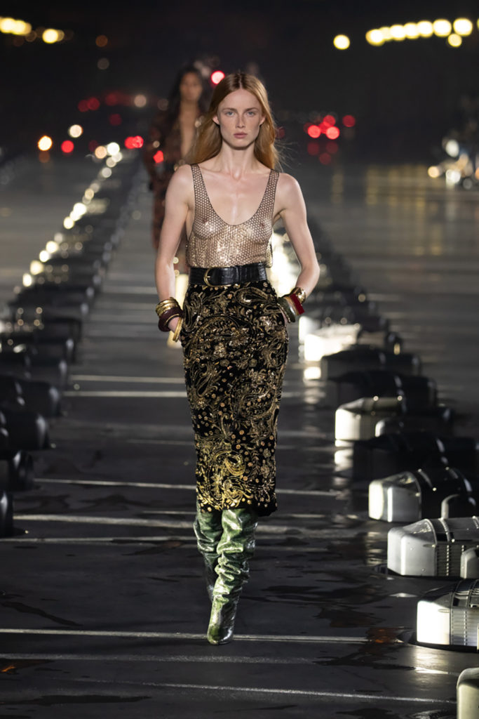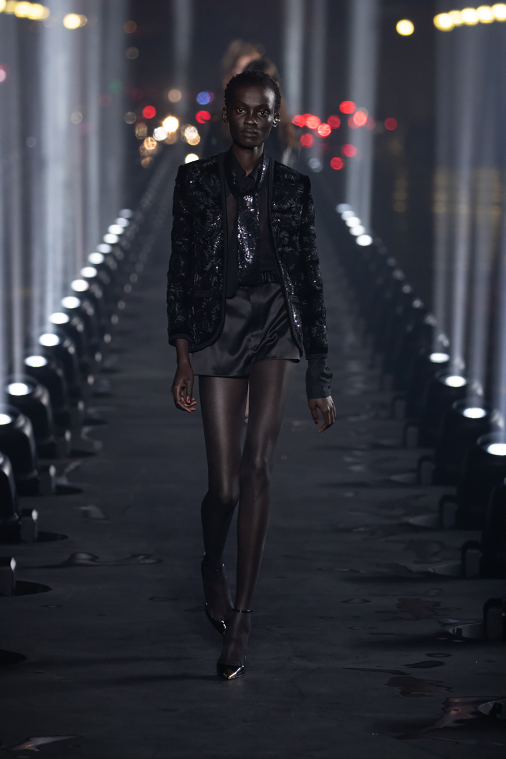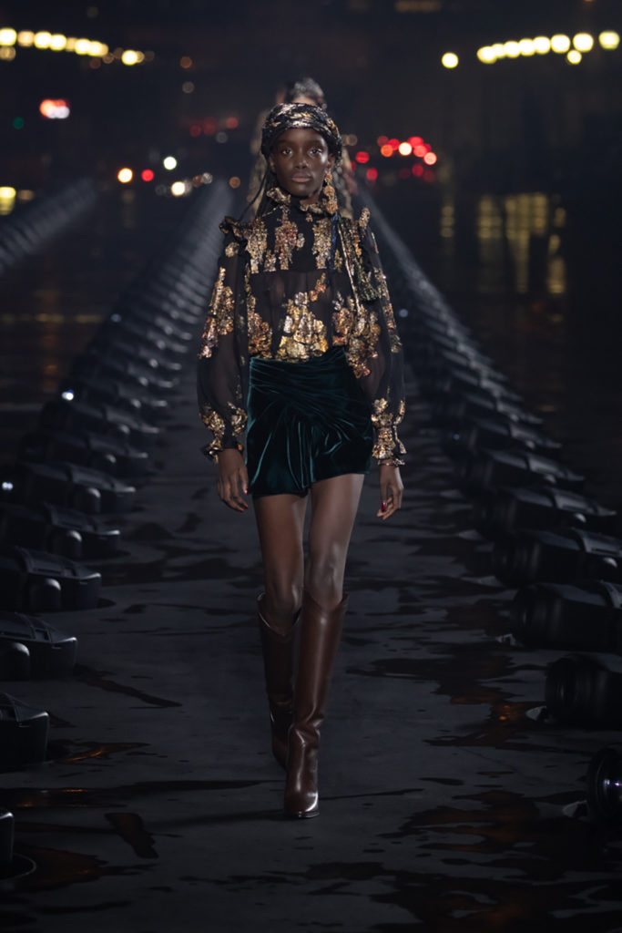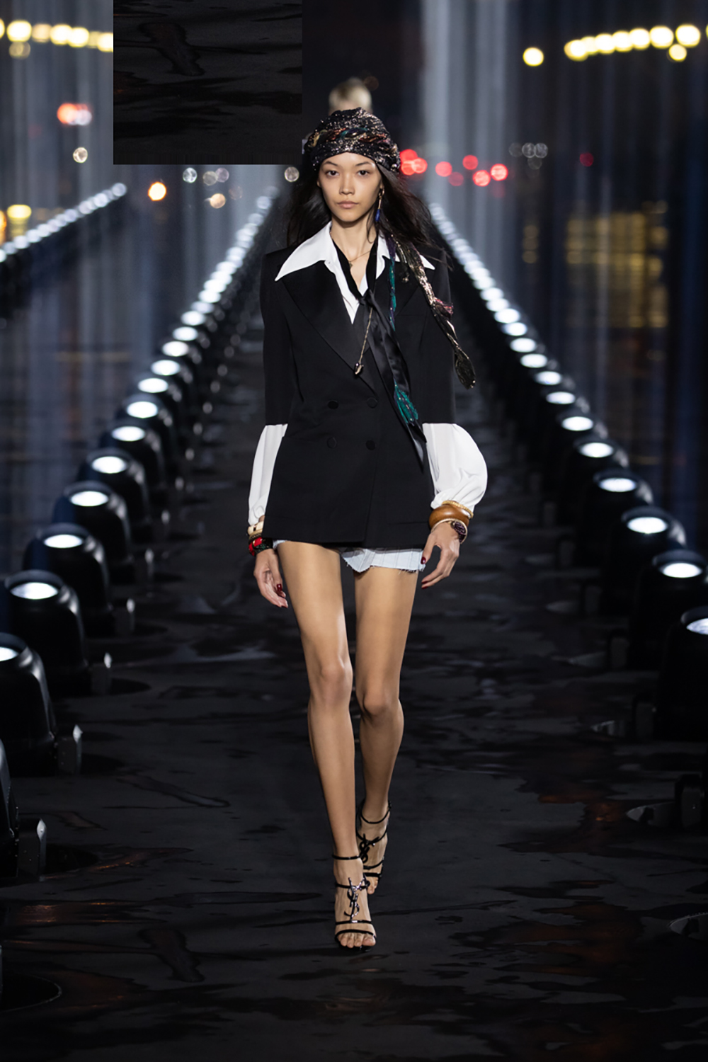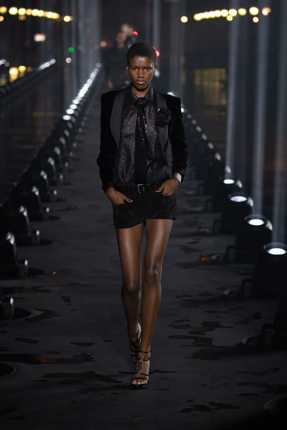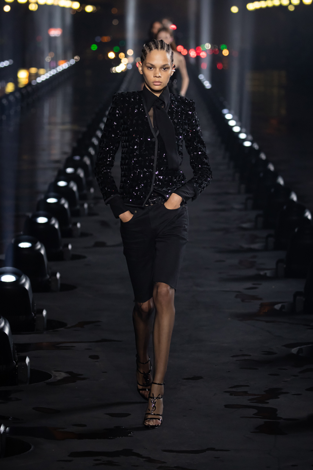 Anthony Vaccarello managed to make the city of light even brighter with white lights lining the runway of Saint Laurent’s Spring/Summer 2020 runway show, opposite the Eiffel Tower. Combing feminine pieces with hints of masculine tailoring, the spirit of Rive Gauche was channeled throughout the 80+ looks in the collection. Vaccarello’s staple short shorts, sequinned blazers, and ’70s inspired pieces flashed, even in their dark palette. Things ended with a bang as supermodel Naomi Campbell closed out the show.