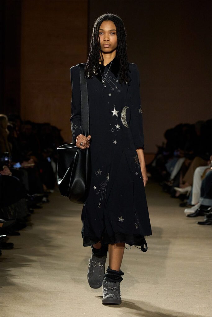 Centred on reflection, this collection celebrates the joys of everyday dressing with fun 90s codes. Uniquely, the show notes included a list of works and references that influenced the designs, such as the 1965 Yves Saint Laurent Couture show and Helmut Lang Fall/Winter 1995 show. Here, memory serves as an anchor for inspiration.
