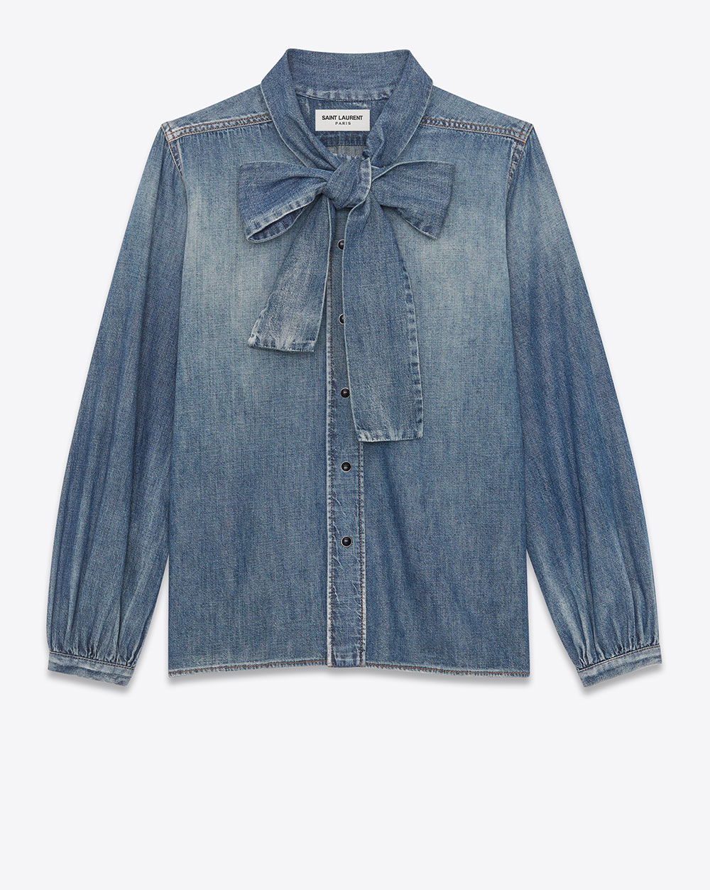 Products mentioned: Belted Denim Maxi Dress, Co, $625; Marta Denim Straight-Leg Jumpsuit, Citizens of Humanity, $350; Wren Stretch Denim Dress, Ulla Johnson, $445; Porter Rigid High-Rise Straight-Leg Jean, Nobody Denim, $270; Recrafted Tapered-fit Jeans, Acne Studios, $590; Lavallière-neck Blouse in Dirty Vintage Blue Denim, Saint Laurent, $1,288; Lou Mini Bag in Quilted Denim, Saint Laurent, $1,683; Baguette Large, Fendi, $3,750; Corey Denim Combat Boots, MICHAEL Michael Kors, $248; Faded High Rise Jeans, Eckhaus Latta, Farfetch.com, $600; Mitch Wide Leg Shorts, Khaite, Farfetch.com, $460; VLOGO Printed Denim Shirt, Valentino, Farfetch.com, $2,250; 1981 Flare, Guess, $108; Rose Jean, Reformation, $258; Vintage Shortalls, Levi’s, $148.